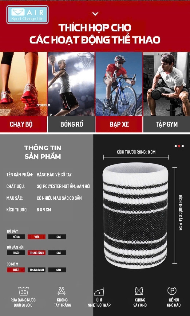 Thông tin sản phẩm: Băng chặn mồ hôi tay AIR siêu thấm hút mồ hôi