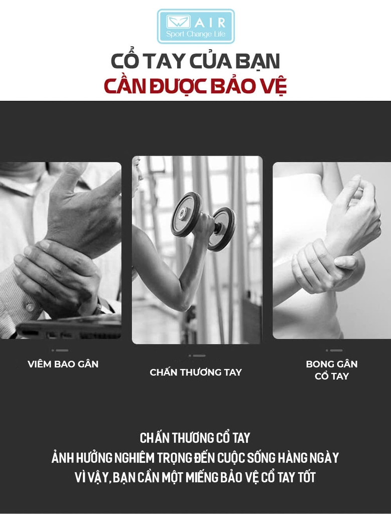 + Bảo vệ cổ tay khỏi các chấn thương nặng.