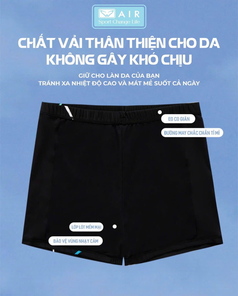 + Chất Liệu: Sợi tổng hợp + Spandex.+ Dáng quần: Ngắn.+ Bề mặt vải mềm mại và thoáng khí.+ Kháng CLO, thân thiện với làn da, không gây kích ứng da.+ Chống tia UVA + UVB+ Công nghệ AIR -DRY giúp quần khô rất nhanh.